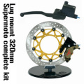 ビレットラグマウントキャリパー・キャリパーブラケット・320mmローター・ブレーキホース・キャストマスターシリンダーという、「これさえあれば大丈夫」というモタードフルキット。