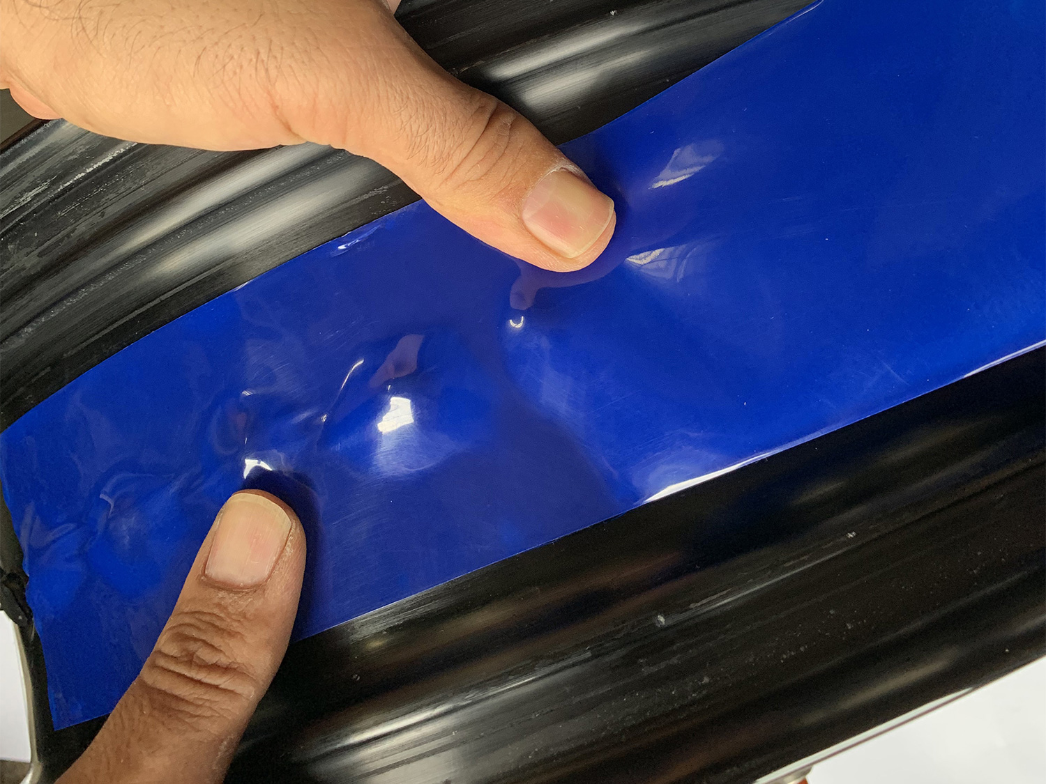・施工直後は高めの空気圧(250kpa程度)にして、しっかりと圧をかけた状態で、一日程度は乗らずに馴染ませてください。この際にチューブを使用して圧力をかけていただくと、より強く接着することが可能です。